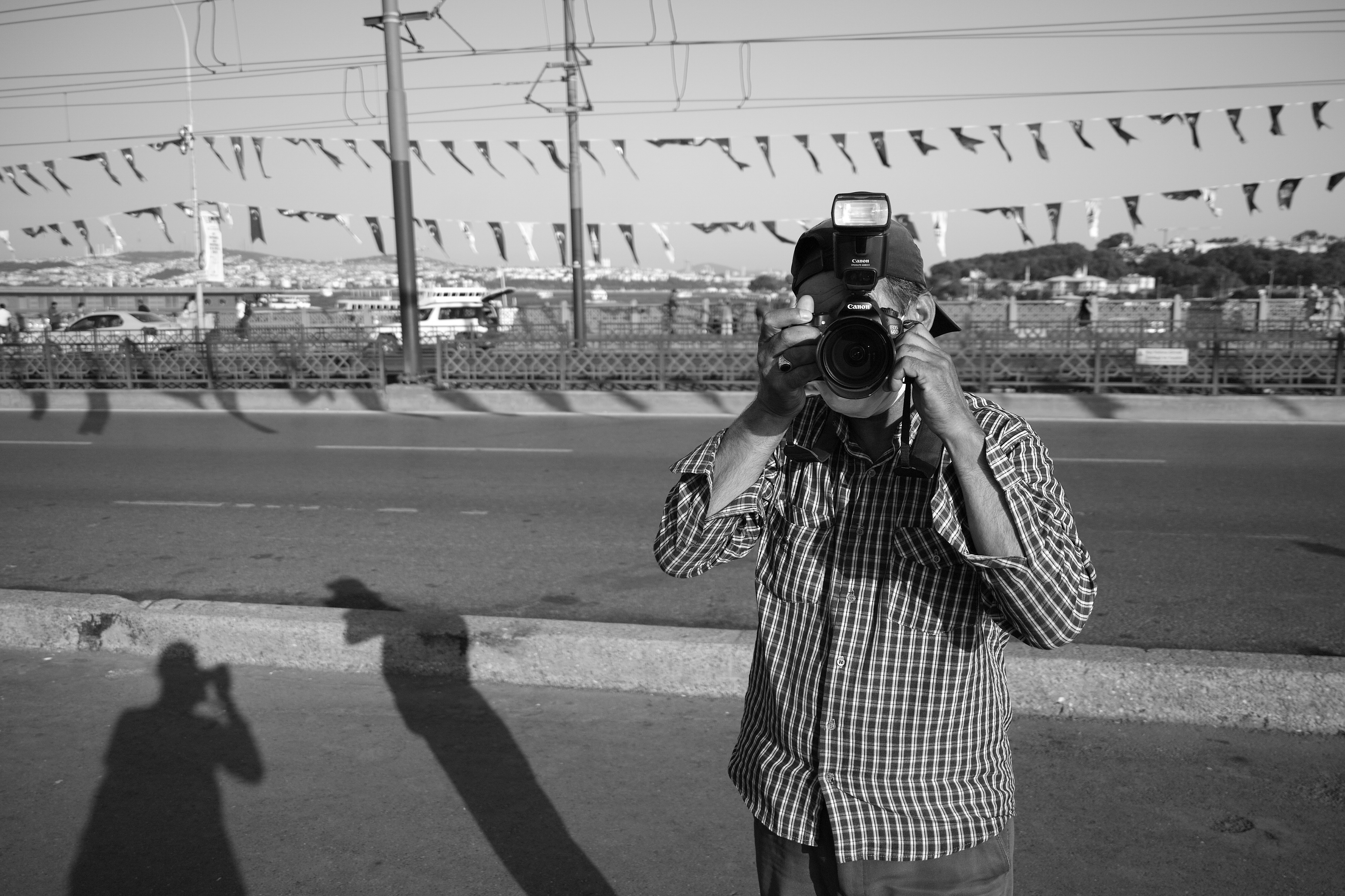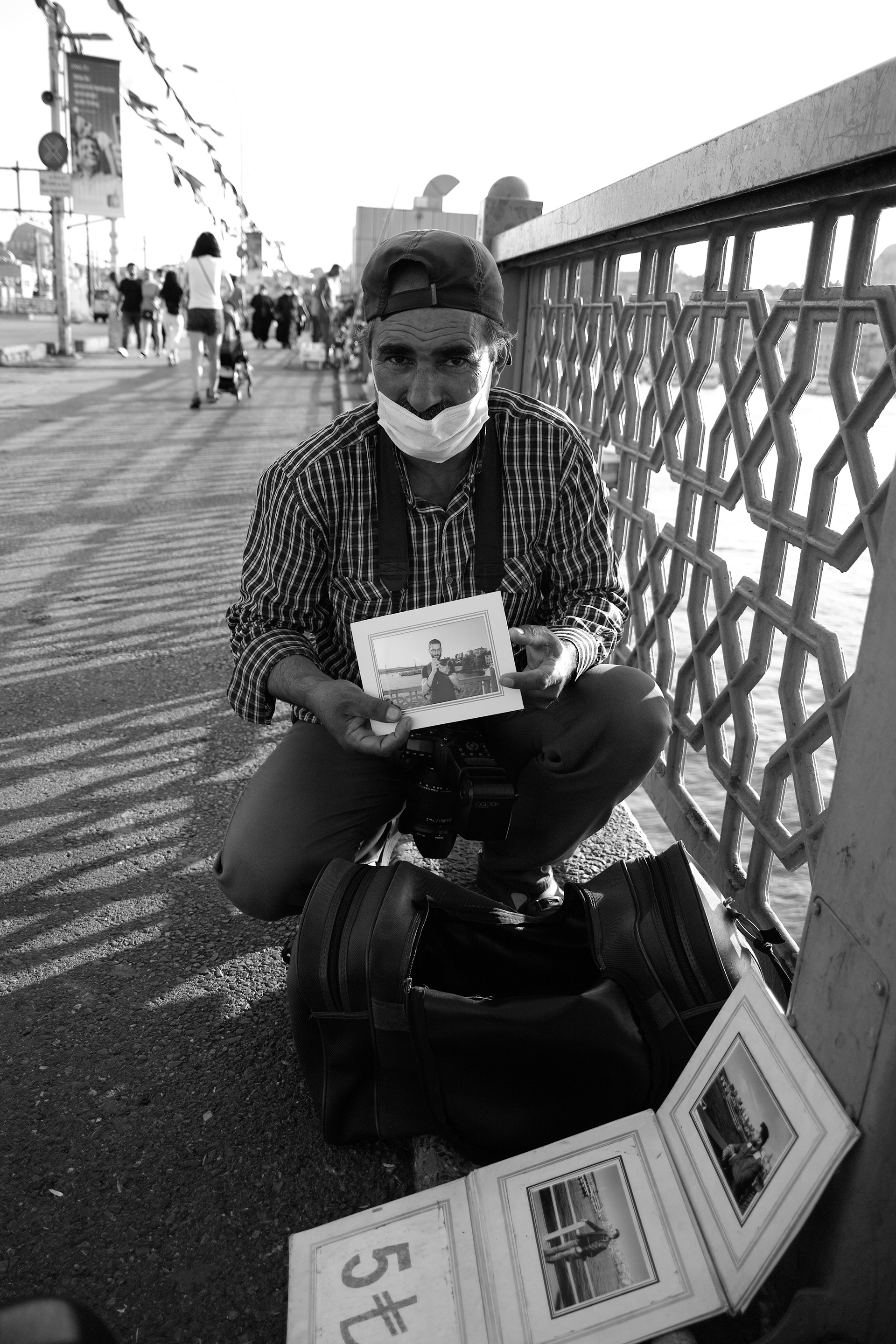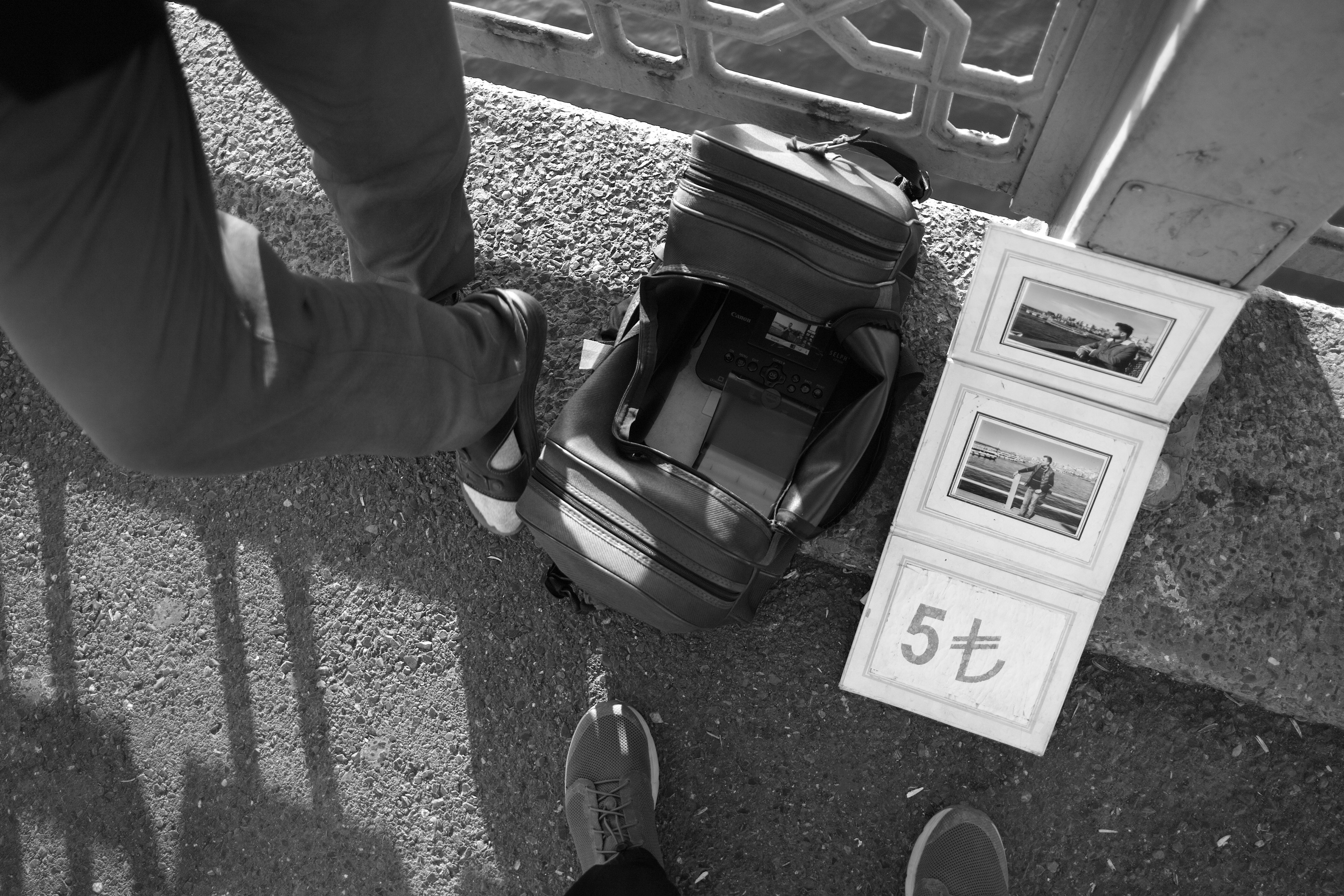 Osman abiyle bir Eylül akşam üstünde Galata köprüsünde karşılaştık. Hem kullandığı ekipman, hem de verdiği hizmet karşılığı aldığı para ilgimi çekti. Fotoğraf kağıdı olmuş ateş pahası bu adam nasıl 5 liraya fotoğraf basabiliyor derken sohbete koyulduk. Hem birbirimizin fotoğraflarını çektik hem hayat, fotoğraf ve diğer şeyler üzerine muhabbet ettik.